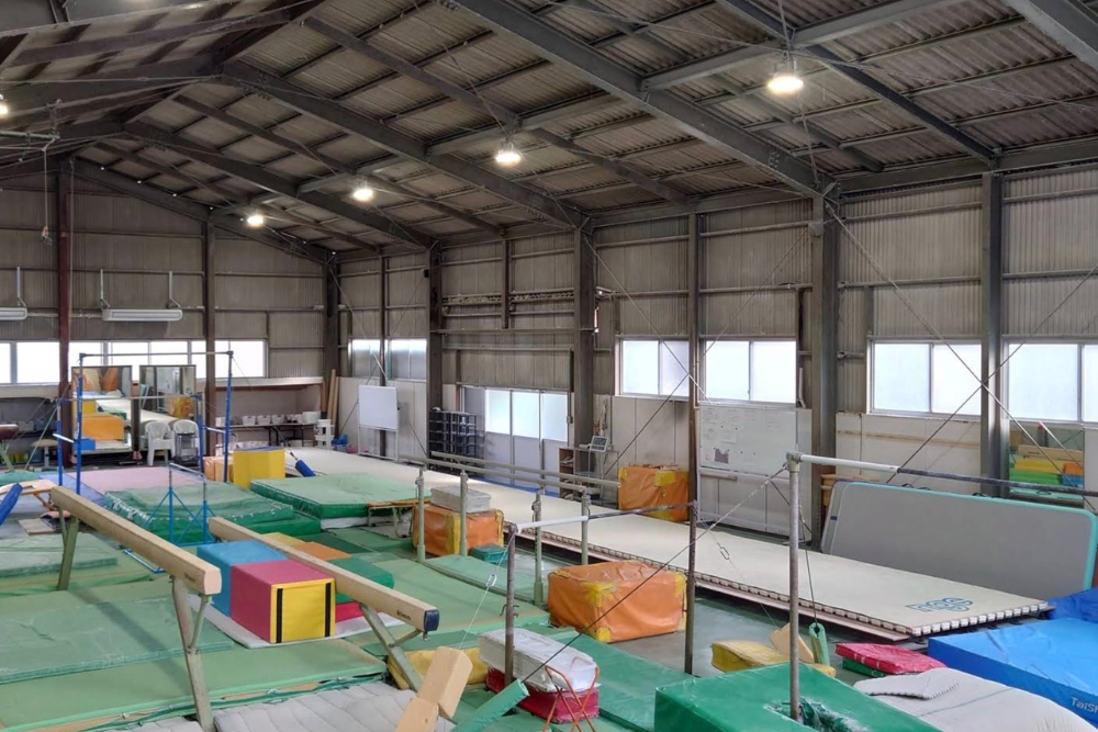器械体操(マット・とび箱・鉄棒・平均台・ミニトランポリン等)を中心に、手具運動(ボール・フラフープ・縄跳びロープ・カラースポンジ積み木等)を用いてのレッスンを行う健康体操コースと、健康体操コースより専門的な練習を行う体操競技コースをご用意しております。