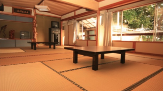 貴重な建築様式の2階建て古民家は、1階部分に居間と和室があり、窓から紅葉を望む2階部分は2部屋で3ベッドご用意しております。